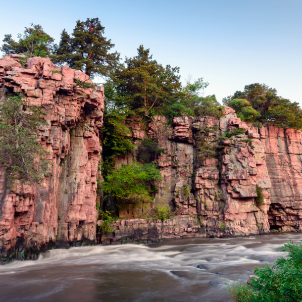 Keep heading West until you reach Sioux Falls, SD. There you can check out Falls Park and maybe have time to see the Sertoma Butterfly House.